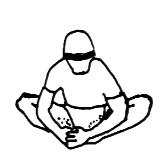 Hauptwirkung: Beinmuskulatur (großen Schenkelanzieher - m. adductor magnus) Beine mit den Ellenbogen nach unten drücken. Dadurch kann die Dehnung intensiviert werden. Die Hände umfassen dabei die Fußspitzen. |